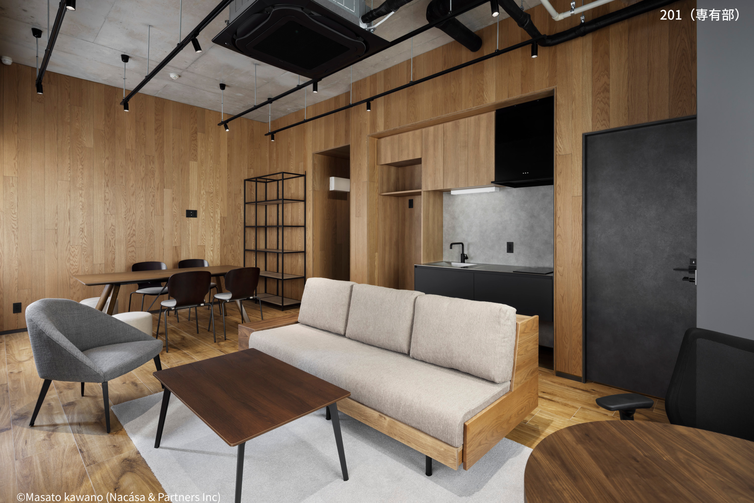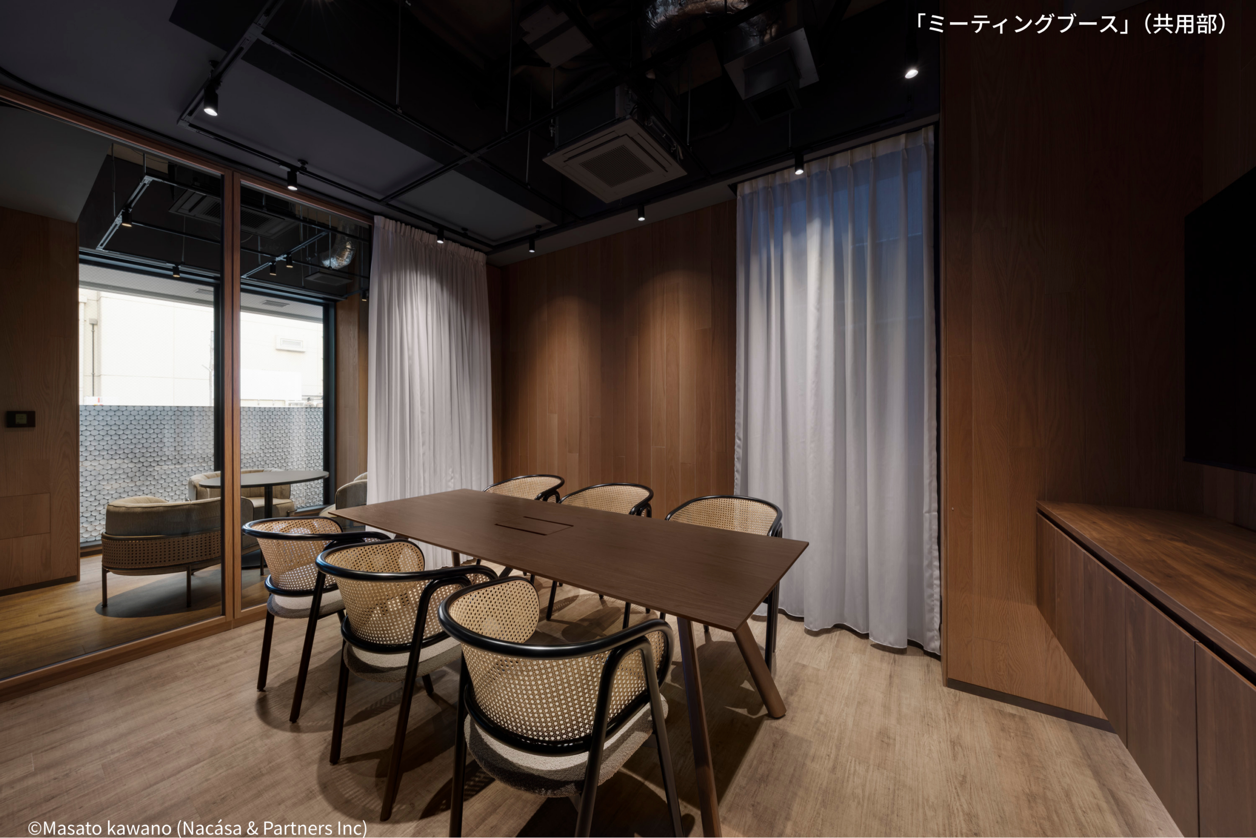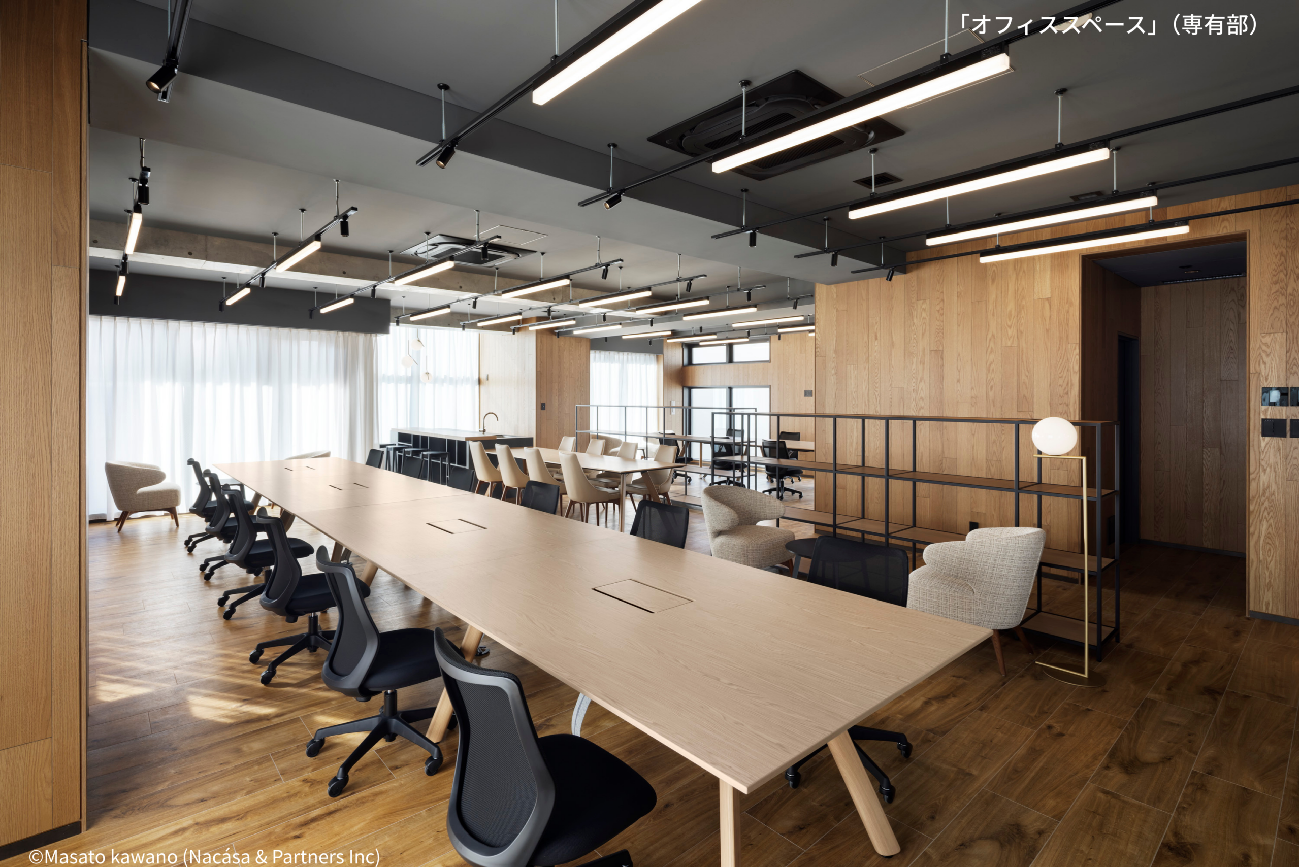 こうした立地環境を活かし、本プロジェクトでは、中小企業が直面する若手・優秀人材の採用・定着といった課題に対し、「働く環境の質」を高めることで応えるオフィスを目指しました。“ホテルライクな安らぎを取り入れた空間”をコンセプトに、洗練されたデザインと機能性を両立。大規模オフィス並みのファシリティを備え、コンパクトな空間で高品質な働き方を実現できるよう設計しています。また、用途に応じて使い分けが可能なミーティングブースや、1階のシェアラウンジ、ルーフテラスなどの共用空間を設けることで、入居者同士の自然なコミュニケーションを促進。業務に集中する時間と、対話や交流の時間の両立を可能とするオフィスを実現しました。 事務所区画5区画に加え、商業登記が可能なSOHO住戸3区画を備え、企業の成長段階や多様なビジネススタイルにも柔軟に対応しています。